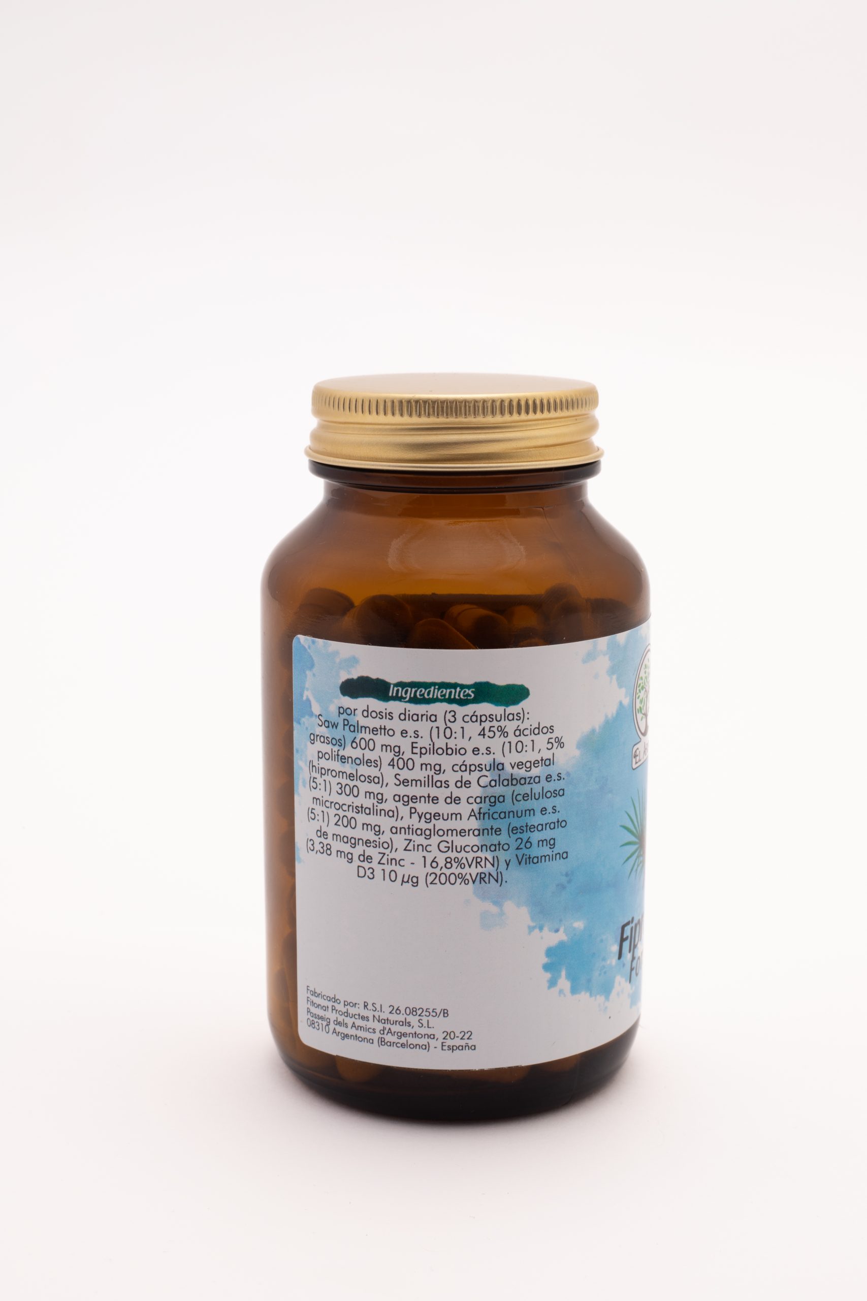 Saw Palmetto e.s. (10:1, 45% ácidos grasos) 600 mg, Epilobio e.s. (10:1, 5% polifenoles) 400 mg, cápsula vegetal (hipromelosa), Semillas de Calabaza e.s. (5:1) 300 mg, agente de carga (celulosa microcristalina), Pygeum Africanum e.s. (5:1) 200 mg, antiaglomerante (estearato de magnesio), Zinc Gluconato 26 mg (3,38 mg de Zinc – 16,8%VRN) y Vitamina D3 10 µg (200%VRN).